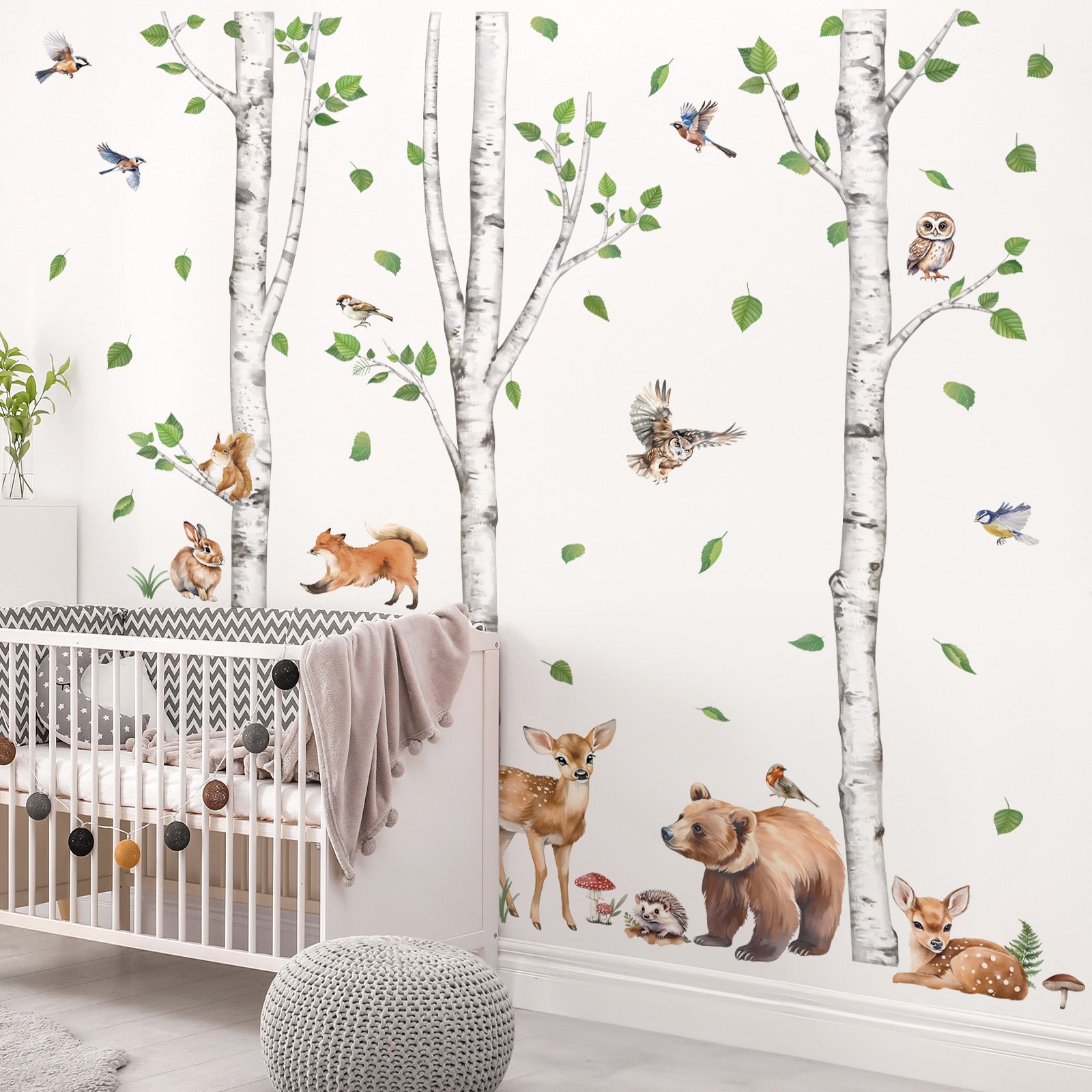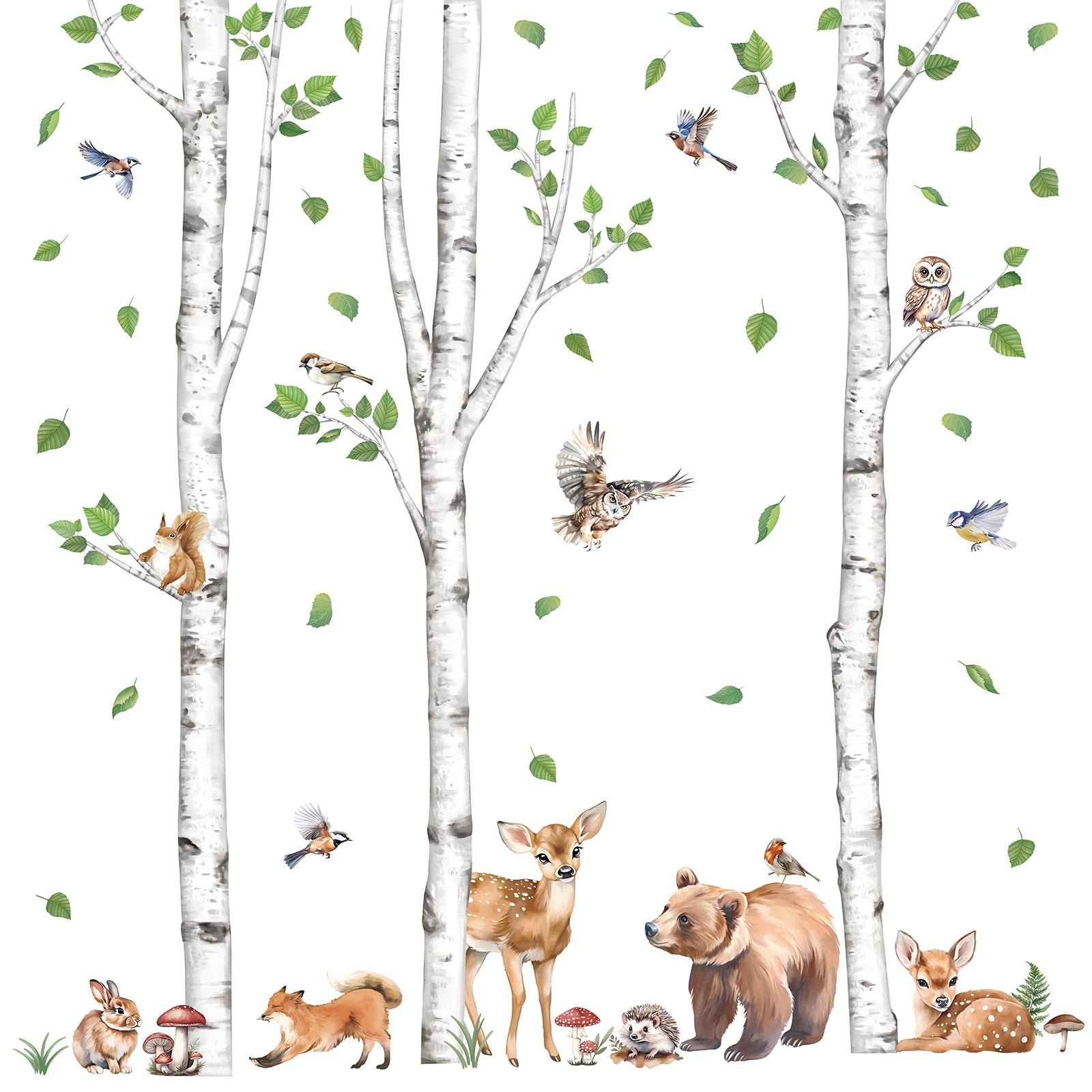 wondever Large Birch Tree Animals Wall Stickers Forest Owl Fox Bear Deer Peel and Stick Wall Art Decals