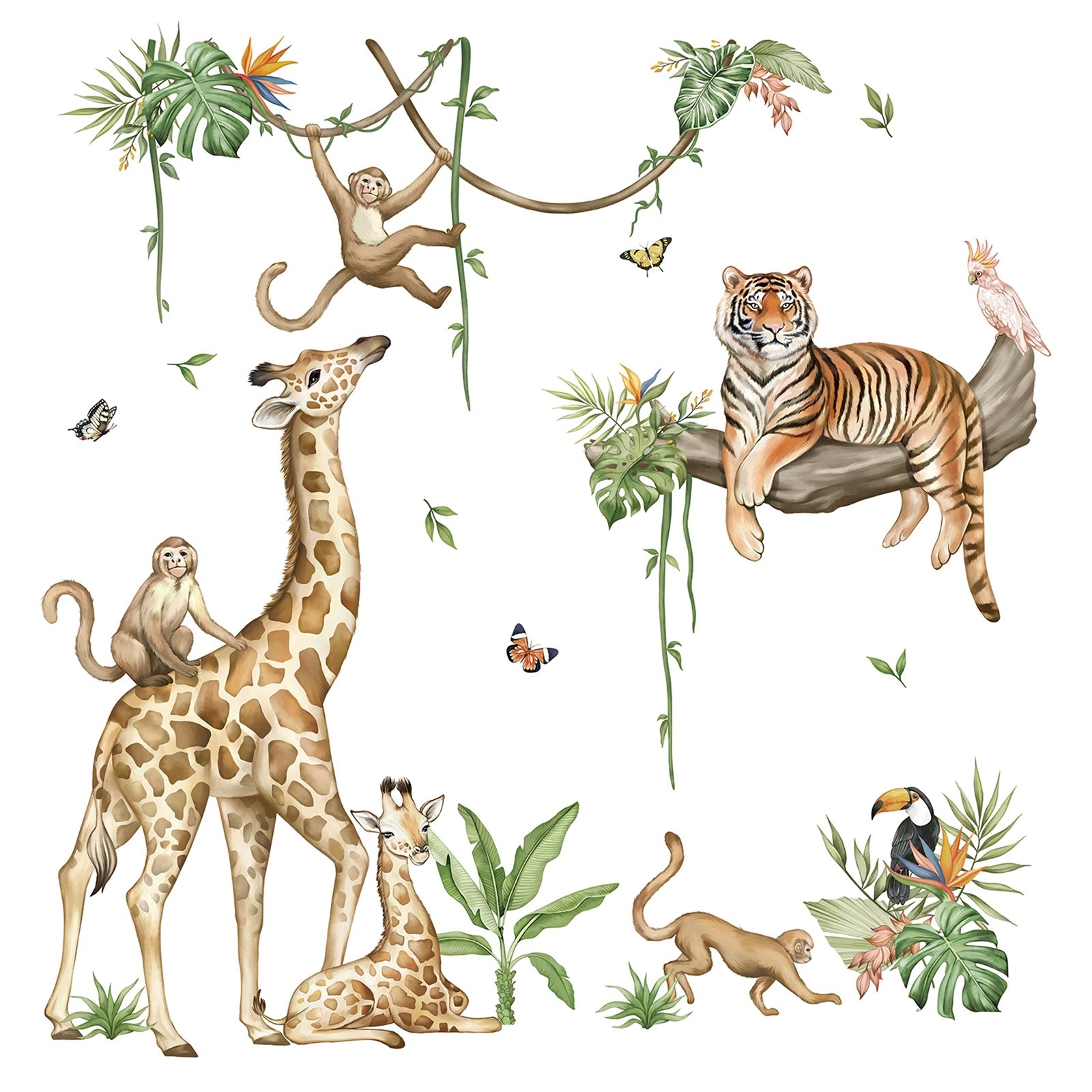 wondever Large Jungle Animal Wall Stickers Safari Giraffe Peel and Stick Wall Art Decals