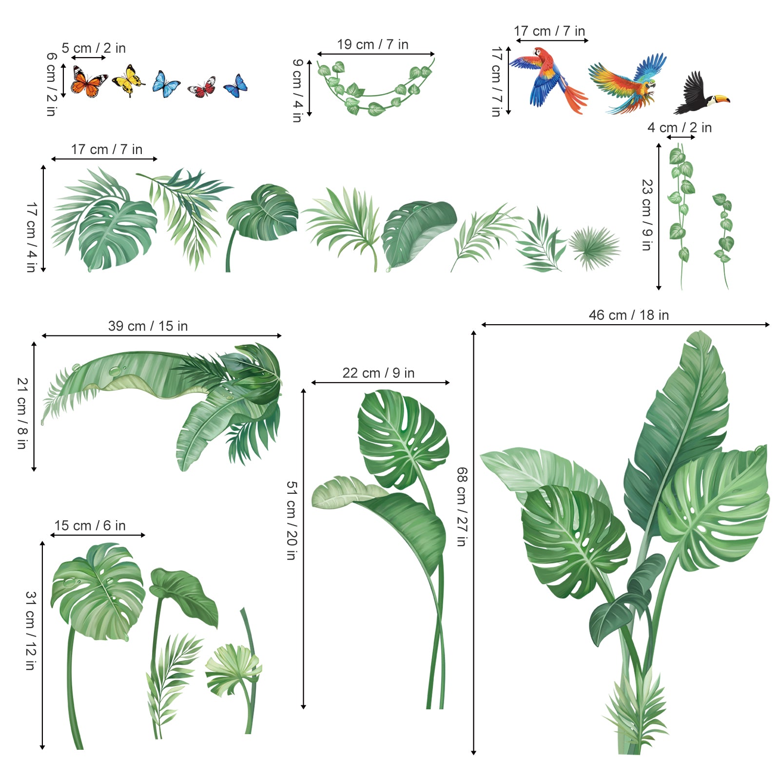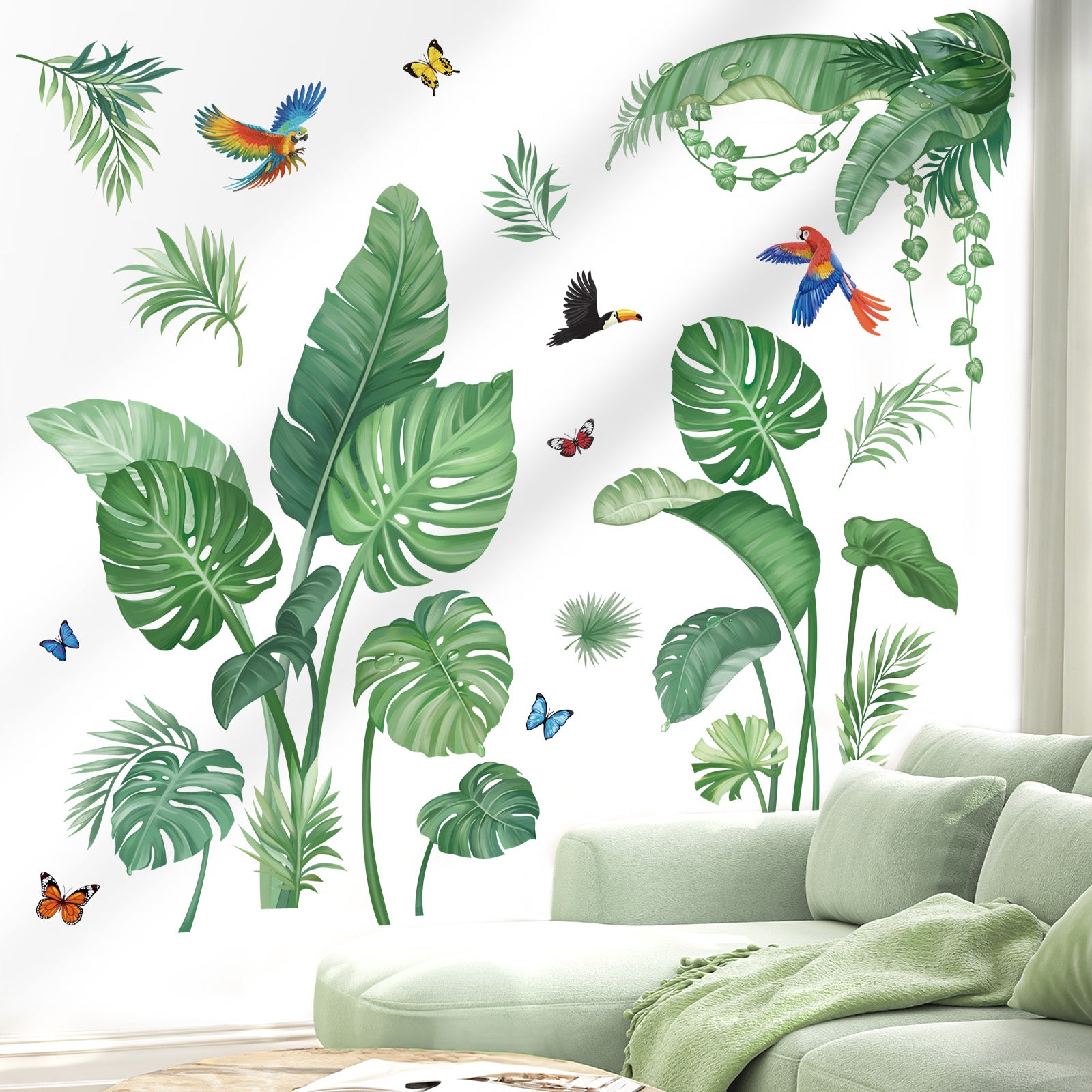 wondever Tropical Palm Leaves Wall Stickers Natural Green Plants Peel and Stick Wall Art Decals for Girls Bedroom Kids Room Baby Nursery